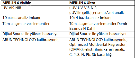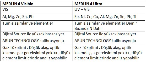 Merlin 4 spektrometre cihazının 2 farklı versiyonu bulunmaktadır.